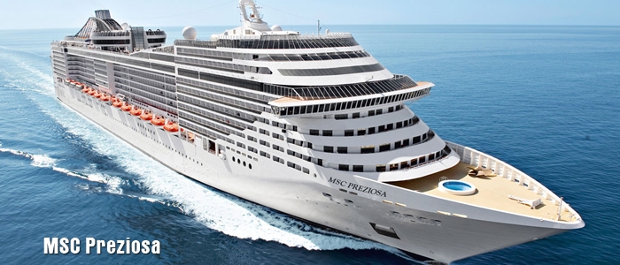 O MSC Preziosa é o navio mais novo da MSC Cruzeiros e estreará em águas brasileiras na temporada 2013/2014. O transatlântico oferecerá minicruzeiros e cruzeiros de 7 e 8 noites por praias maravilhosas. Os hóspedes poderão conferir uma obra-prima dos mares com a mistura perfeita de sofisticação, avançada tecnologia, design italiano e alta gastronomia.
